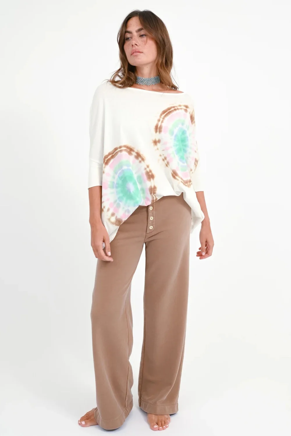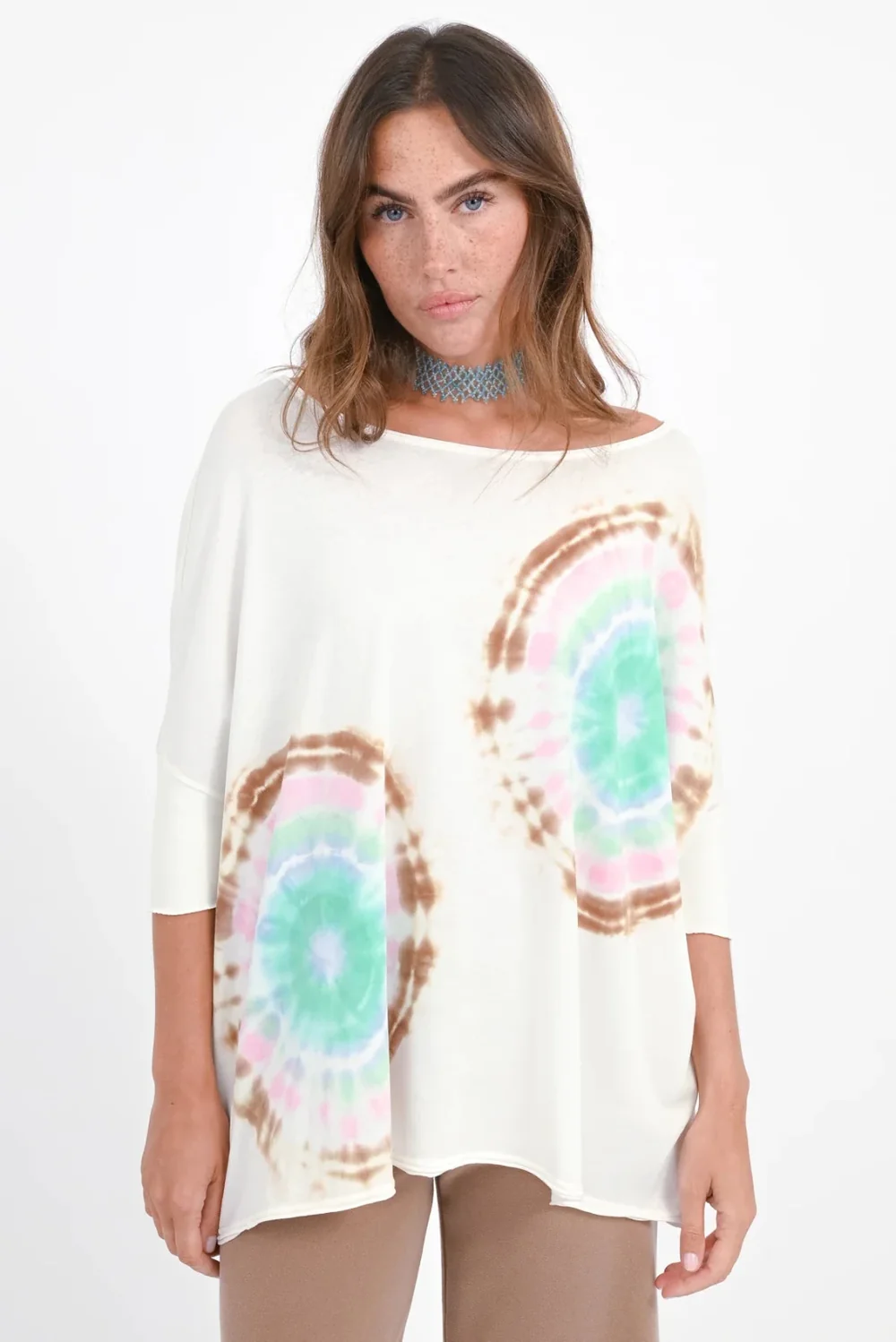 Color & details: Batik dyeing with an individual character – each piece is unique. The round neckline, dropped shoulders and open seams at the neck and hem give the shirt a modern, casual touch. Fine, wide ribbing at the sleeve ends provides a high-quality finish. Small elephant embroidery on the right back as a subtle signature detail.